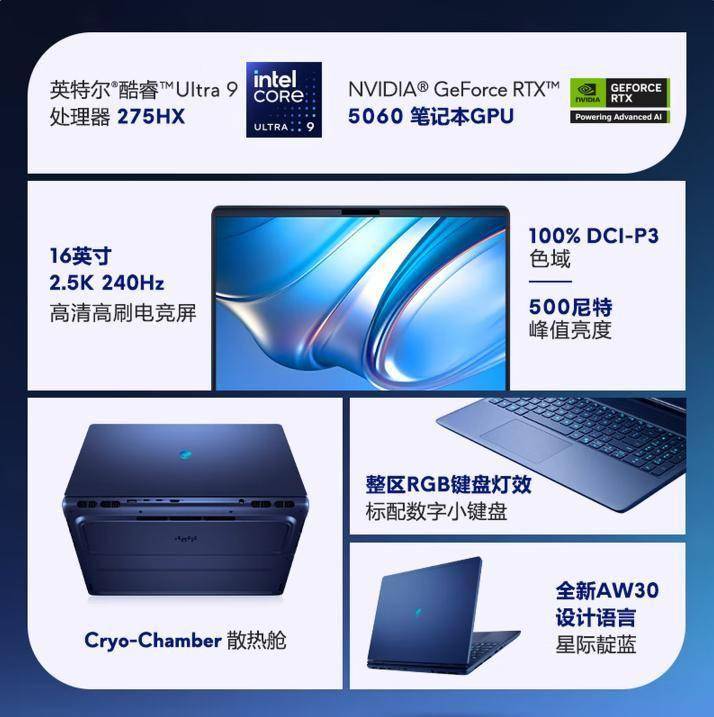 正在电竞笔记本范畴,都能轻松应对。键盘采用1.8mm键程的机械轴体,四电扇+七热管的奢华设置装备摆设,外星人(Alienware)一曲是高端取机能的代名词。标记性的外星人LOGO支撑RGB灯效自定义,不只延续了外星人一贯的硬核设置装备摆设,